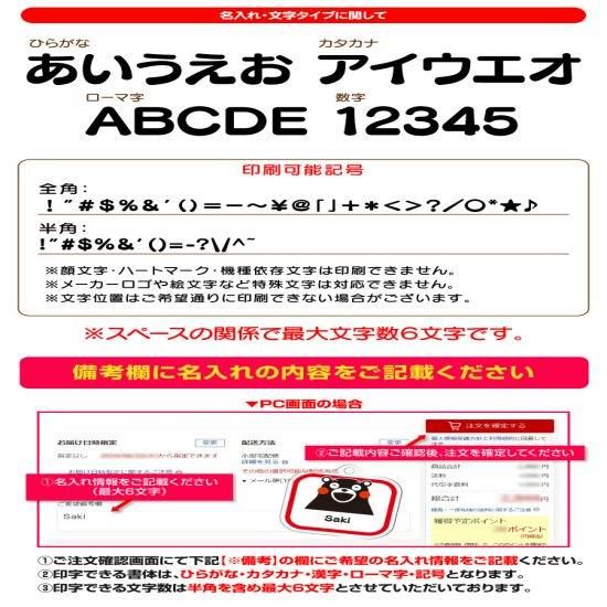 アクリル ネームタグ ネームプレート アンブレラマーカー かさ 傘 名入れ 名前 名札 チャーム マーカー オリジナル オーダーメイド 幼稚園 保育園 入園 通園 入学 準備 お祝い グッズ キャラクター くまモン かわいいくまモンのタグで自分の傘がすぐわかる! 間違いやすい傘のネームプレートです。 入園のお祝いに最適♪ かわいいくまモンプレートにお子様のお名前を名入れしてお届け致します。 ※ラッピング等のご依頼は承っておりません。 ※取り付け用のパーツに関しましては、ラジオペンチ等ご準備頂き、ご自身で取り付け頂きます様お願い申し上げます。 ◇名入れ ※名入れに関しては、メールにてご確認致します。 ※スペースの関係で最大文字数6文字になります。 ※顔文字・ハートマーク・機種依存文字は印刷できません。 ※メーカーロゴや絵文字など特殊文字は対応できません。 ※文字位置はご希望通りに印刷できない場合がございます。 ◇傘用のシリコンリング1個付属 ブラック・ホワイト・クリア(半透明)からお選びください。 ■デザイン A. 笑い B. 笑顔 C. 大笑い D. じと目 E. ほっ ■素材 アクリル